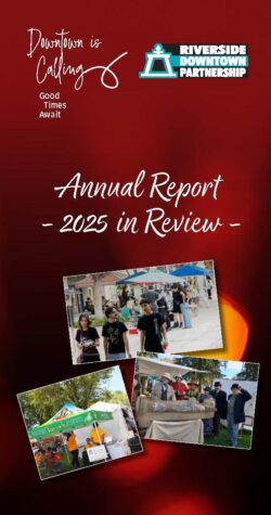 Each year the Riverside Downtown Partnership (RDP) prepares an annual report for distribution to its membership and all businesses within the Downtown BID. The Annual Report details the activities of RDP within the past calendar year, and is formally presented at RDP’s Annual Meeting and Awards Ceremony in February of each year.